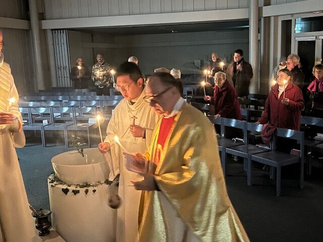 Samedi Saint à 21h00, la communauté de la Fontaine d’Ouche s’est réunie pour célébrer la Vigile Pascale à la paroisse Sainte Élisabeth de la Trinité.